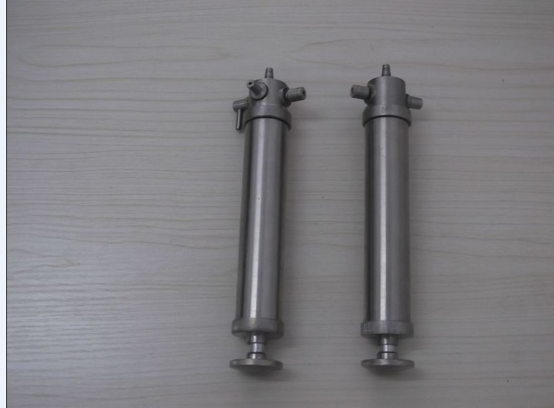 主要由三通閥門、進氣口、出氣口、膠塞閥、拉桿、活塞、氣筒及密封圈等部件組成。